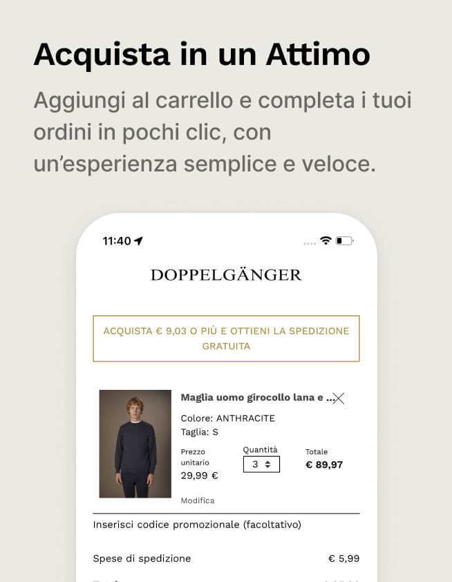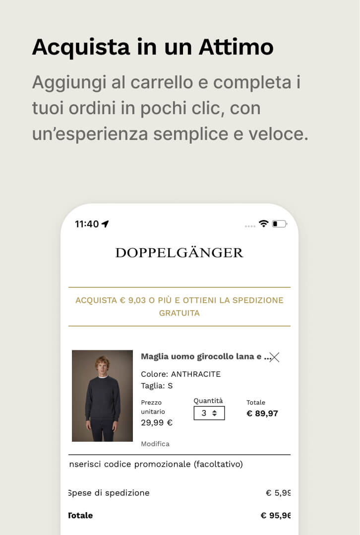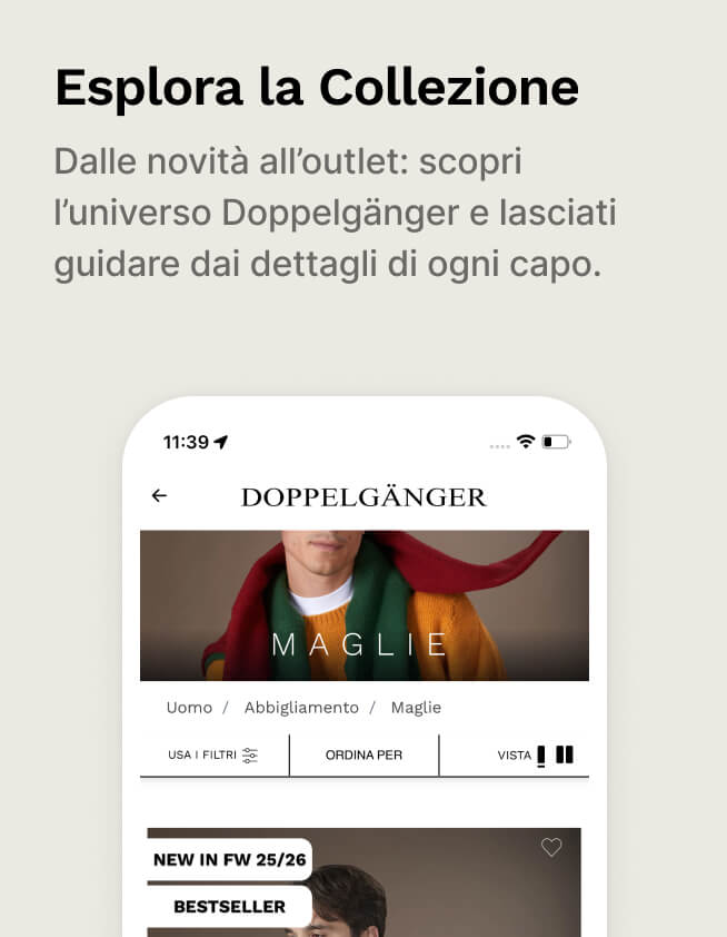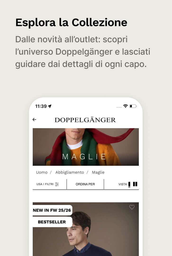 Scarica l'App Doppelgänger e vivi un' esperienza di shopping completa e sempre a portata di mano.